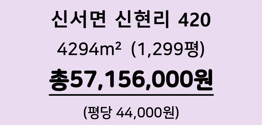 신서면 신현리 420/ 4,294m²(1,299py)/전/39,000원