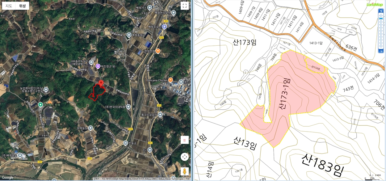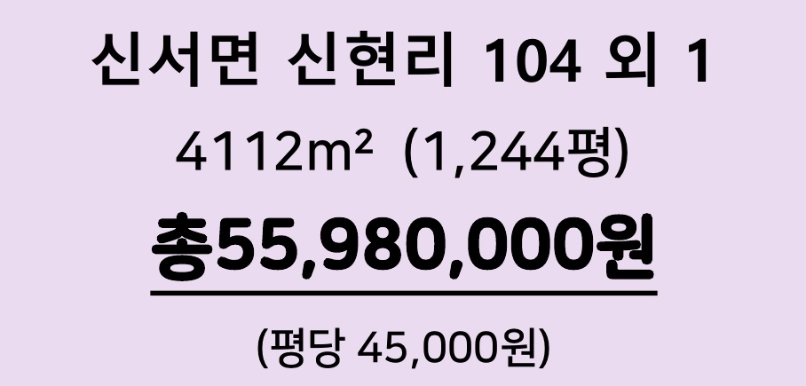 신서면 신현리 104, 105 /4,112m²(1,244평)/대지, 전/45,000원