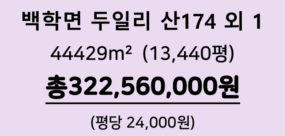 백학면 두일리 산174 외1/ 44,429²(13,440py)/전/24,000원