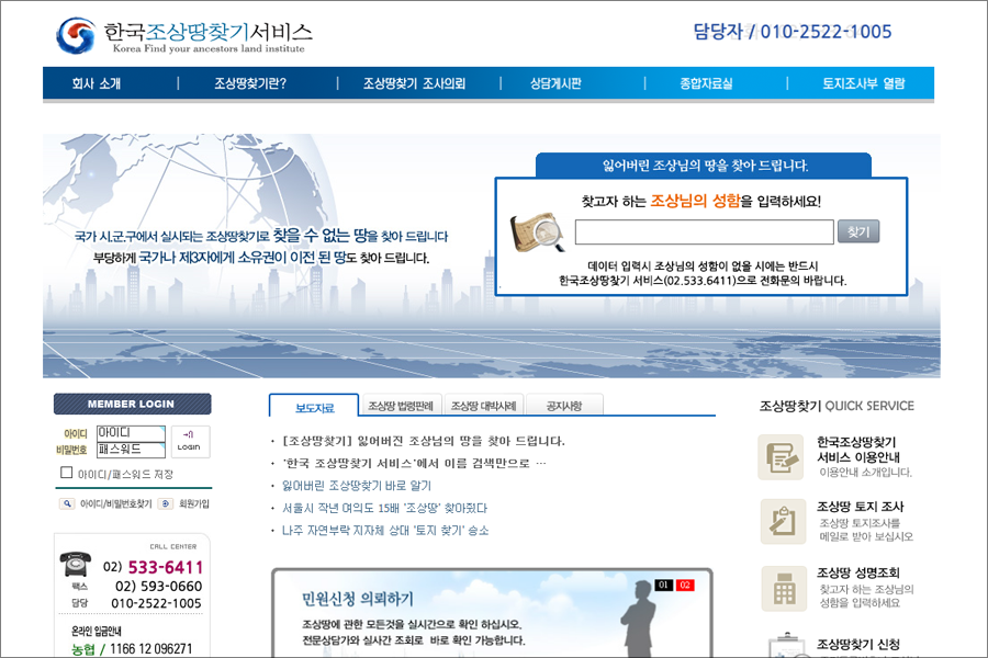 조상땅찾기 서비스를 통해 조상님이 소유했던 땅의 지번을 알 수 있습니다.