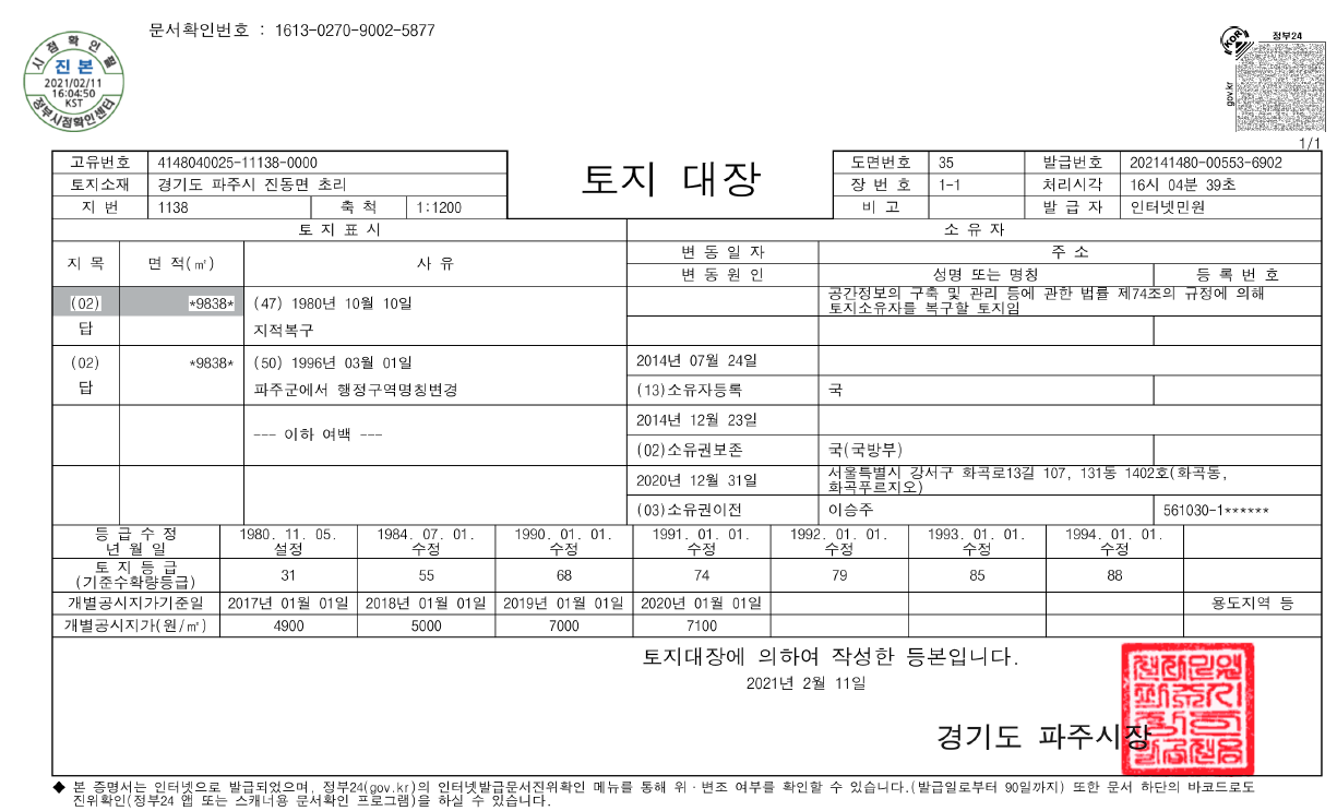 언젠가 북한이 개방이 되고 경제협력 거점이 될 때에는 이 토지가 분명 의미있게 사용될 것이라고 보입니다.