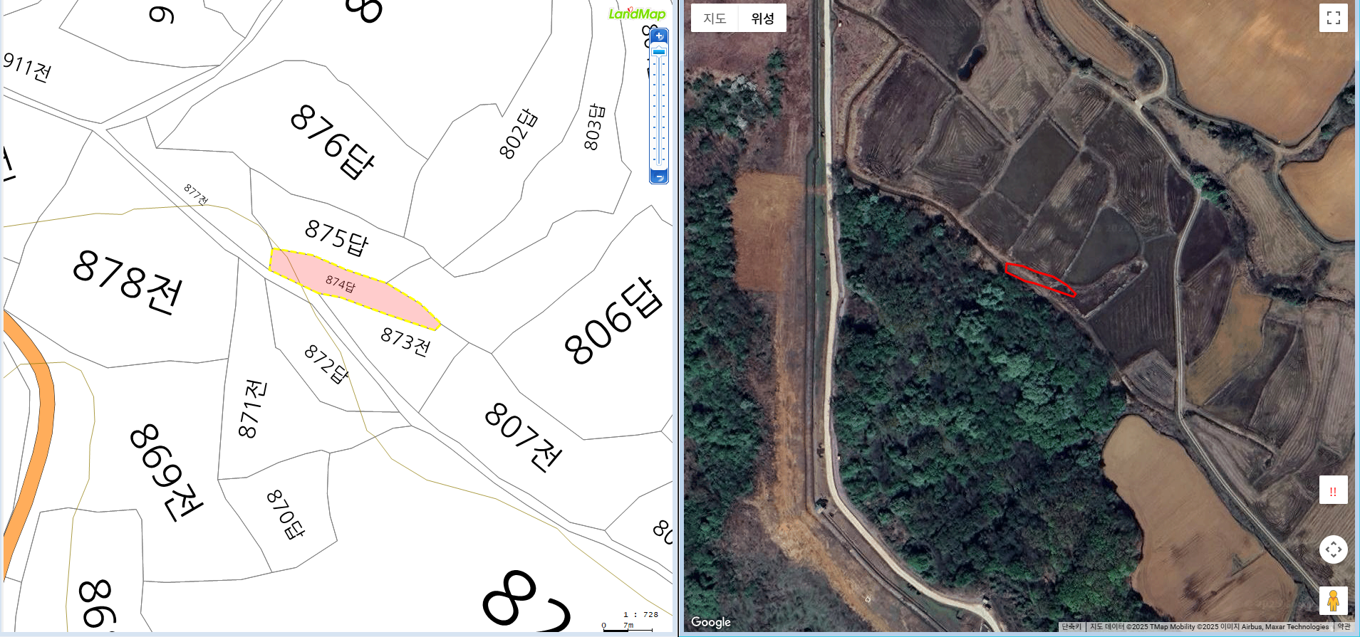장단면 노상리 874/344m²(104평)/답/105,600원
