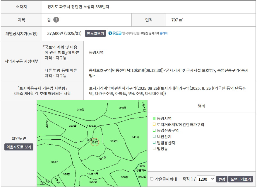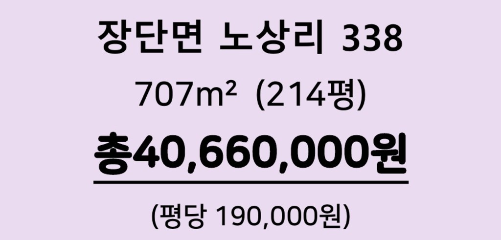 장단면 노상리 338/707m²(214평)/답/190,000원