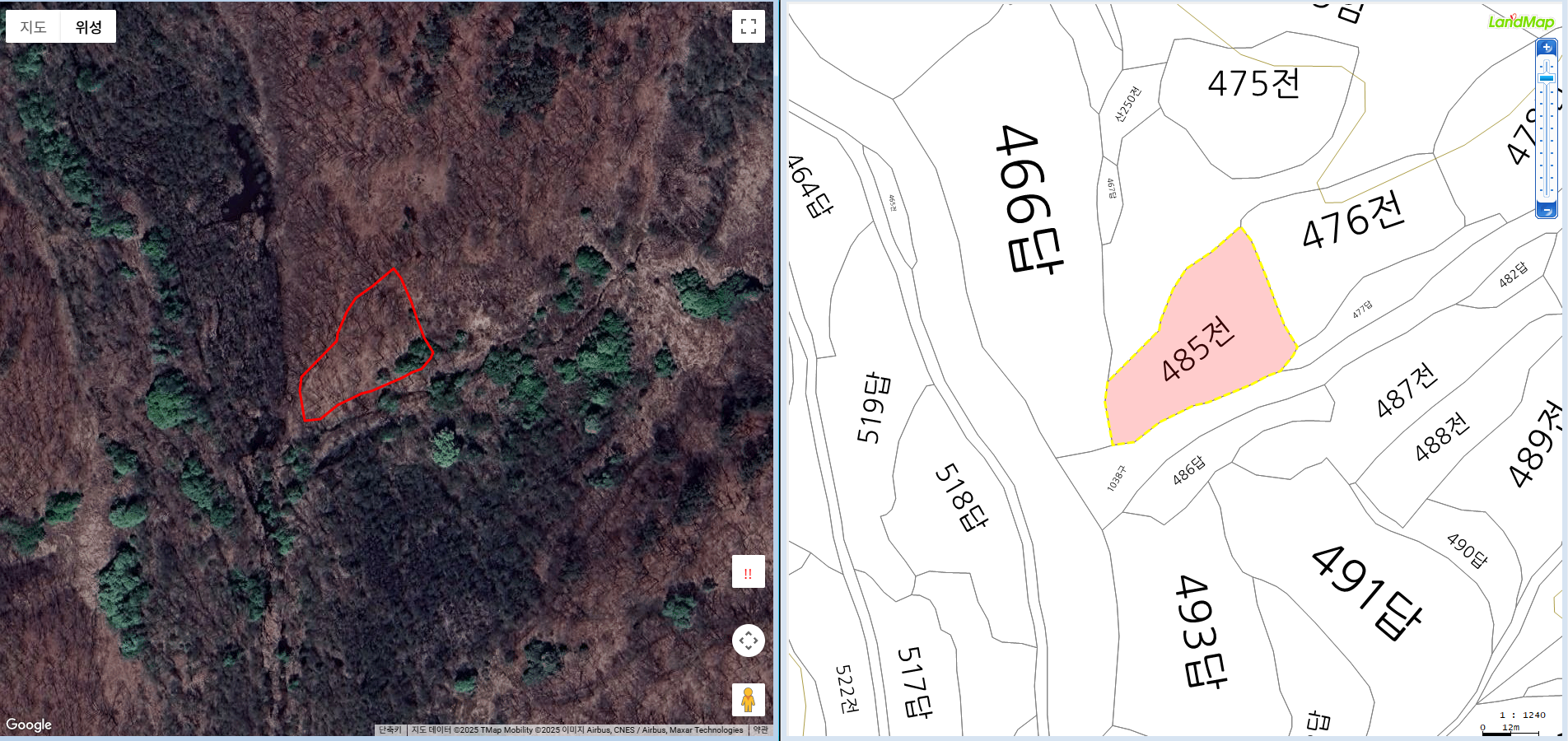 • 아래로 구거가 붙었고, 구거는 옆에 하천과 연결되어 있습니다.